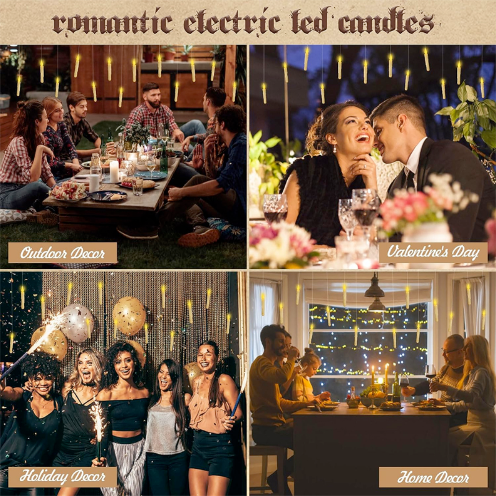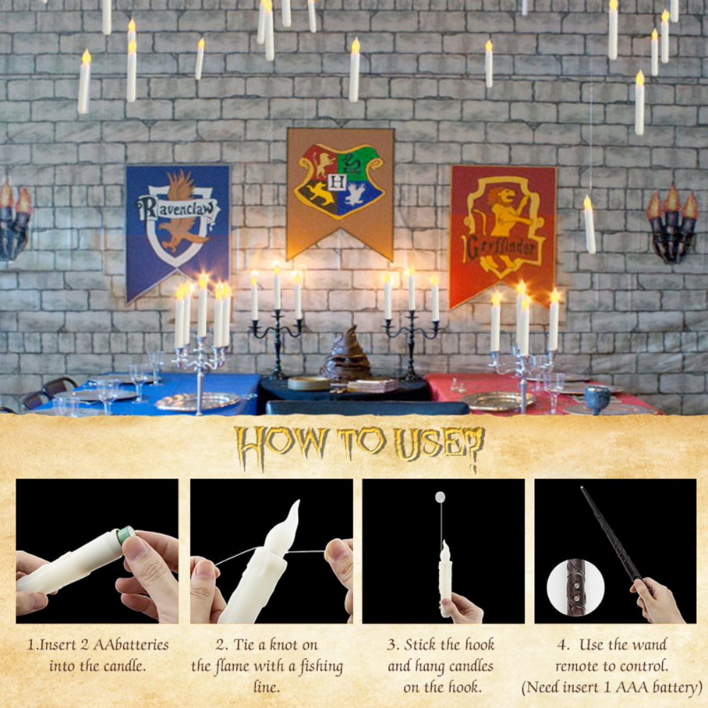 Add a touch of enchantment to your space with these charming floating candles. Made from sturdy plastic, they feature built-in LED lights that glow in captivating yellow flashes. With an easy-to-use rotary switch on the wand, you can activate the candles to light up any area. Plus, each set comes with a handy remote control for the magic wand, making them perfect for any occasion, be it Halloween, Christmas, weddings, or theme parties. Versatile and delightful, they can be hung from ceilings, trees, archways, or placed in windows. The candles measure 2cm x 17cm, while the magic wand measures 2cm x 33.2cm. Please note that batteries are not included.