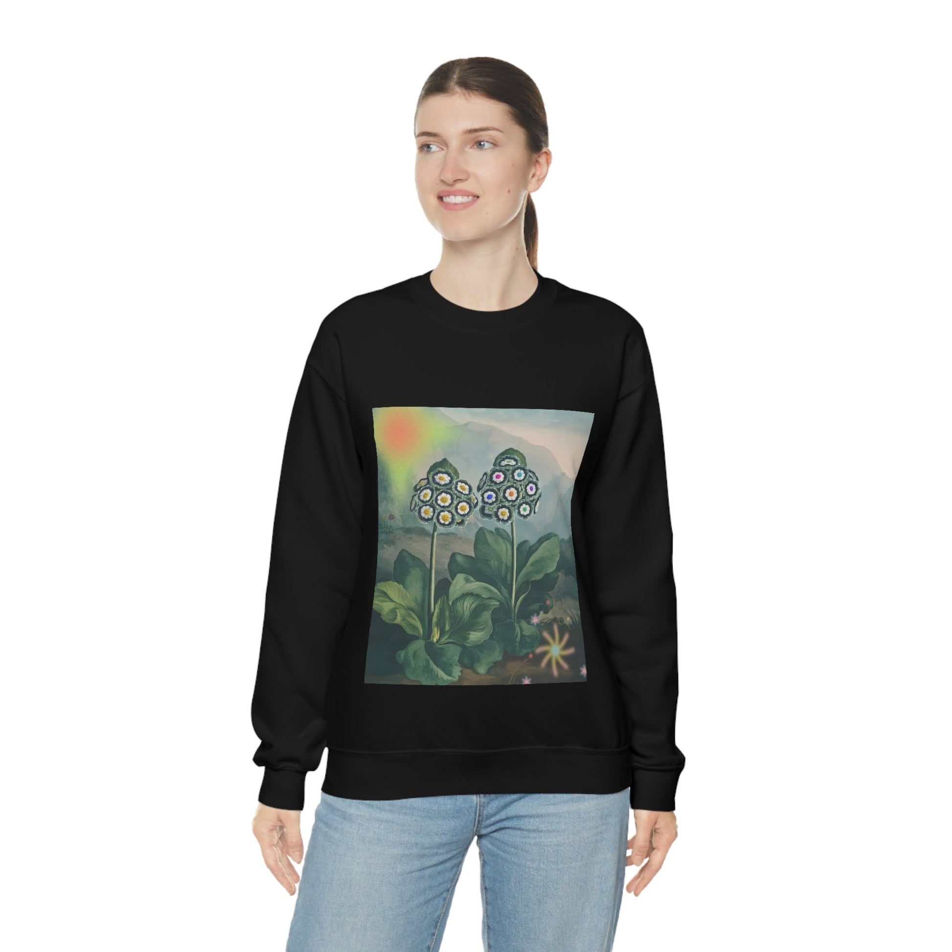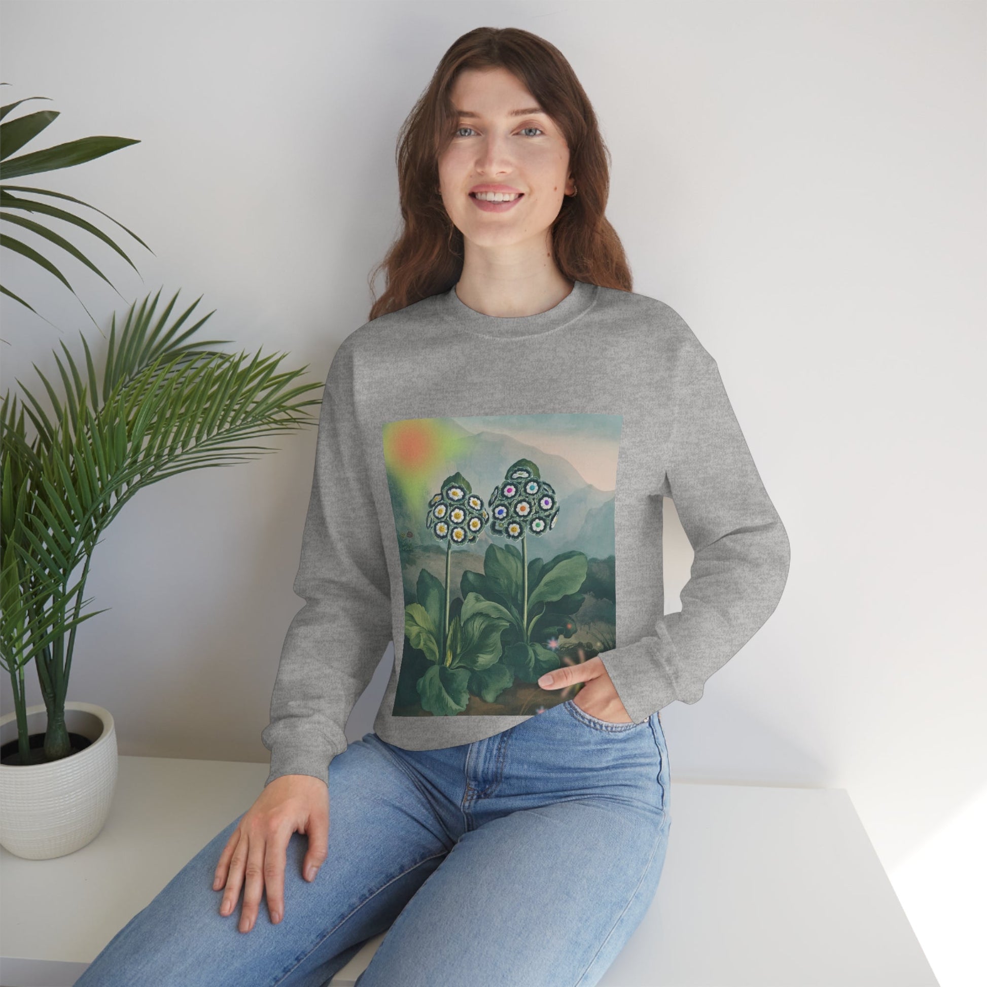 Slip into something comfortable with this cozy sweatshirt that boasts a loose, relaxed fit for ultimate wearability. The Majestic Life of Plants design adds a playful edge to any outfit, while the high-quality cotton and polyester blend ensures lasting, luxurious comfort. This medium fabric sweatshirt is available in true-to-size options from small to 2XL. Use the convenient size guide to find your perfect fit, with width measurements ranging from 20 to 28 inches and length measurements ranging from 25.99 to 30 inches. With its fun design and comfortable fit, this sweatshirt is a must-have addition to any wardrobe.