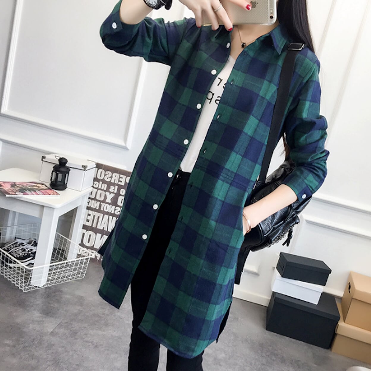 Plaid Shirt with Mid-Length and Convenient Pockets for Women