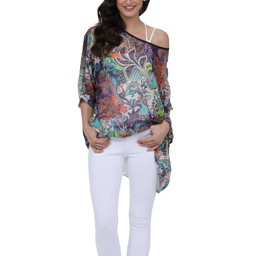 Introducing the "" women's floral beach tunic top, a fashionable and stunning summer outfit. This exquisite tunic features a vibrant floral pattern, perfect for embracing the beauty of sunny days. Its lightweight and breathable fabric ensures comfort and a relaxed fit, ideal for beach outings or casual summer gatherings. The loose and flowy silhouette allows for effortless movement, while the breezy short sleeves provide coverage without sacrificing coolness. The delicate V-neckline adds a subtle feminine touch, enhancing your natural beauty. Pair it with denim shorts or white skinny jeans for a chic and relaxed look, complemented by a wide-brimmed hat, oversized sunglasses, and a straw tote bag. Whether at the shoreline or in the park, this floral beach tunic top is a must-have addition to your summer wardrobe. Available in one size, with bust, sleeve, and length measurements of 66", 20", and 26" respectively. Material: Chiffon. Color: Mixed. Fit: Loose Fit. *Measurement may be off by up to 1" due to measuring method.